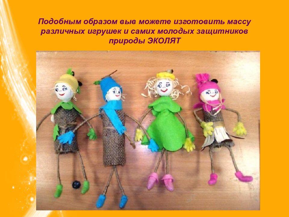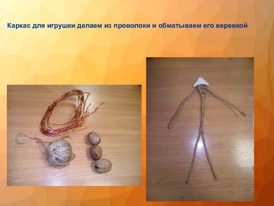 Как и все дети эколята любят играть. Игрушка для молодого защитника природы должна быть изготовлена только из природного материала Материалы для работы Мешковина Веревка джутовая Орехи, желуди Проволока Клей