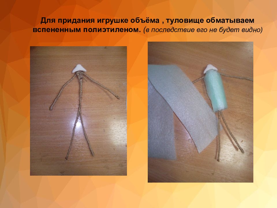 Для придания игрушке объёма, туловище обматываем вспененным полиэтиленом. ( в последствие его не будет видно)
