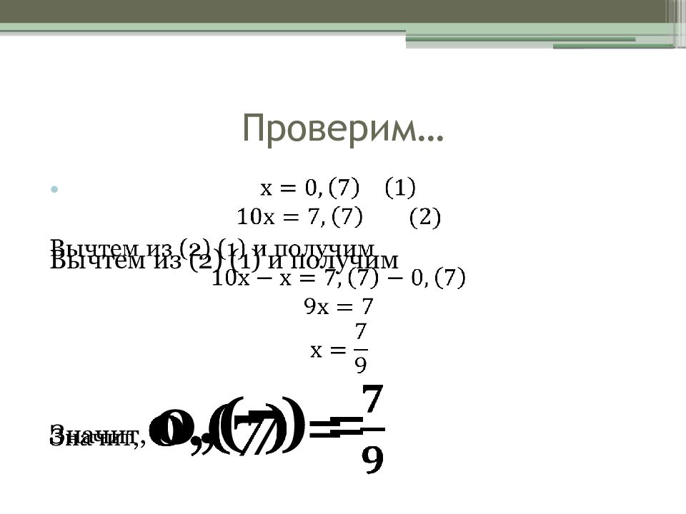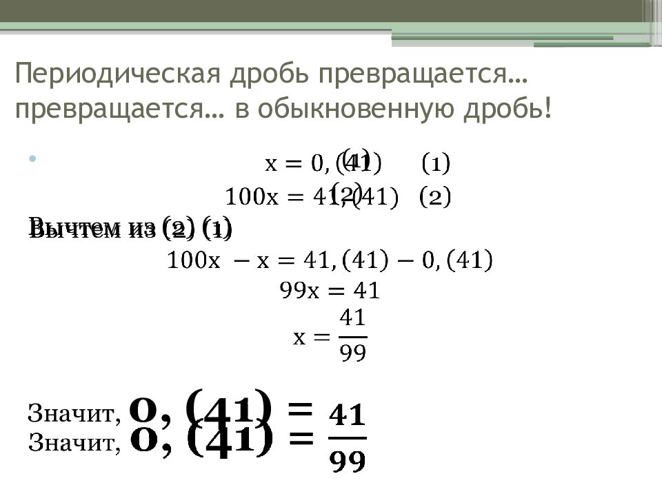 Слайд 24: Периодическая дробь превращается… превращается… в обыкновенную дробь!