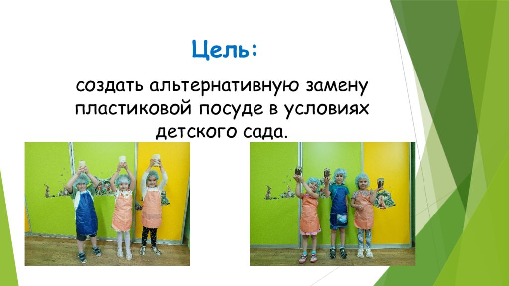 создать альтернативную замену пластиковой посуде в условиях детского сада. Цель: