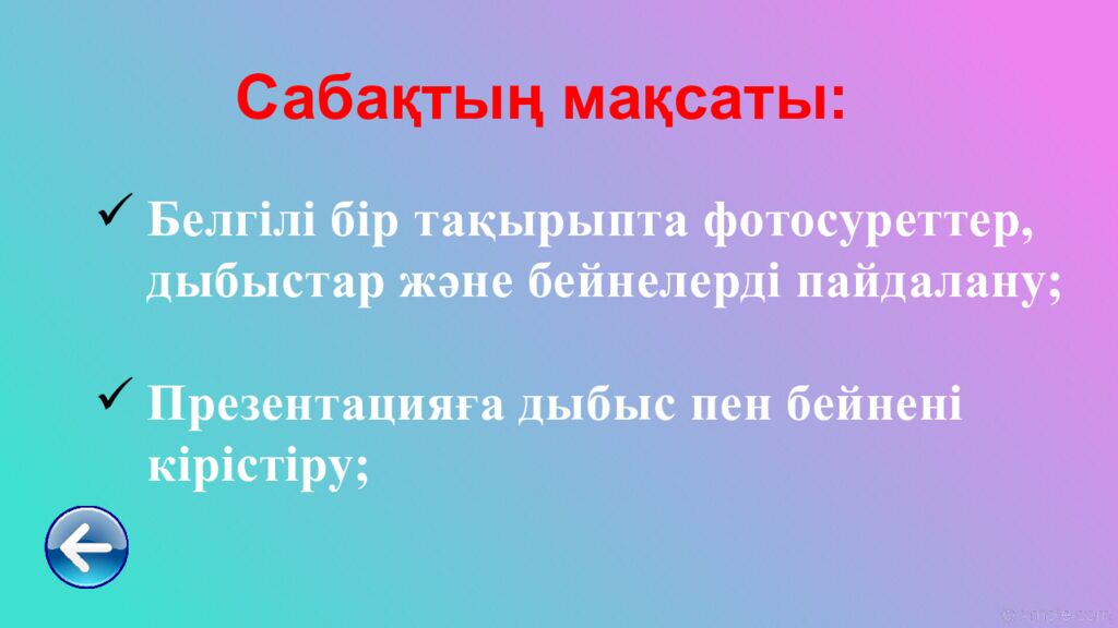 Мәтіннен тұрмыстық химия тауарларының қасиеттерін сипаттайтын ұғымдардың астын сыз. Мәтінді оқы.Мәтінге сәйкес, дұрыс жауап нұсқасын таңда. Мәтінді оқы. Тұжырымдардың қайсысы мәтінге сәйкес келеді? Сабақтың мақсаты: Белгілі бір тақырыпта фотосуреттер, дыбыстар және бейнелерді пайдалану; Презентацияға дыбыс пен бейнені кірістіру;