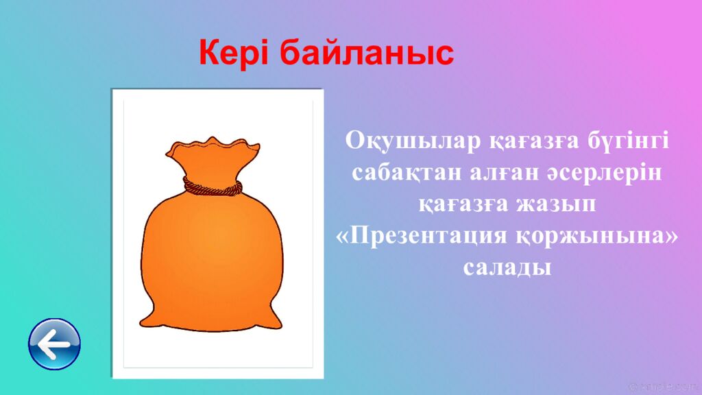 Мәтіннен тұрмыстық химия тауарларының қасиеттерін сипаттайтын ұғымдардың астын сыз. Мәтінді оқы.Мәтінге сәйкес, дұрыс жауап нұсқасын таңда. Мәтінді оқы. Тұжырымдардың қайсысы мәтінге сәйкес келеді? Кері байланыс Оқушылар қағазға бүгінгі сабақтан алған әсерлерін қағазға жазып «Презентация қоржынына» салады