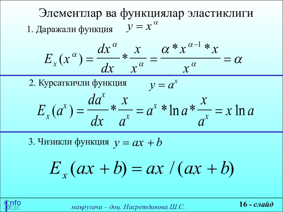 Слайд 16: Элементлар ва функциялар эластиклиги
