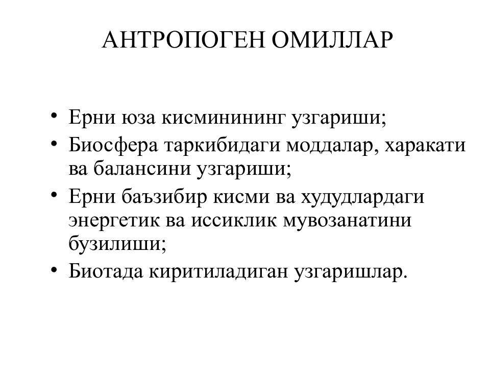 Слайд 40: АНТРОПОГЕН ОМИЛЛАР