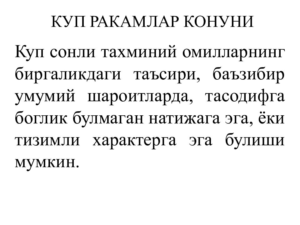 Слайд 26: КУП РАКАМЛАР КОНУНИ