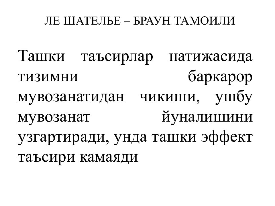 Ташки таъсирлар натижасида тизимни баркарор мувозанатидан чикиши, ушбу мувозанат йуналишини узгартиради, унда ташки эффект таъсири камаяди