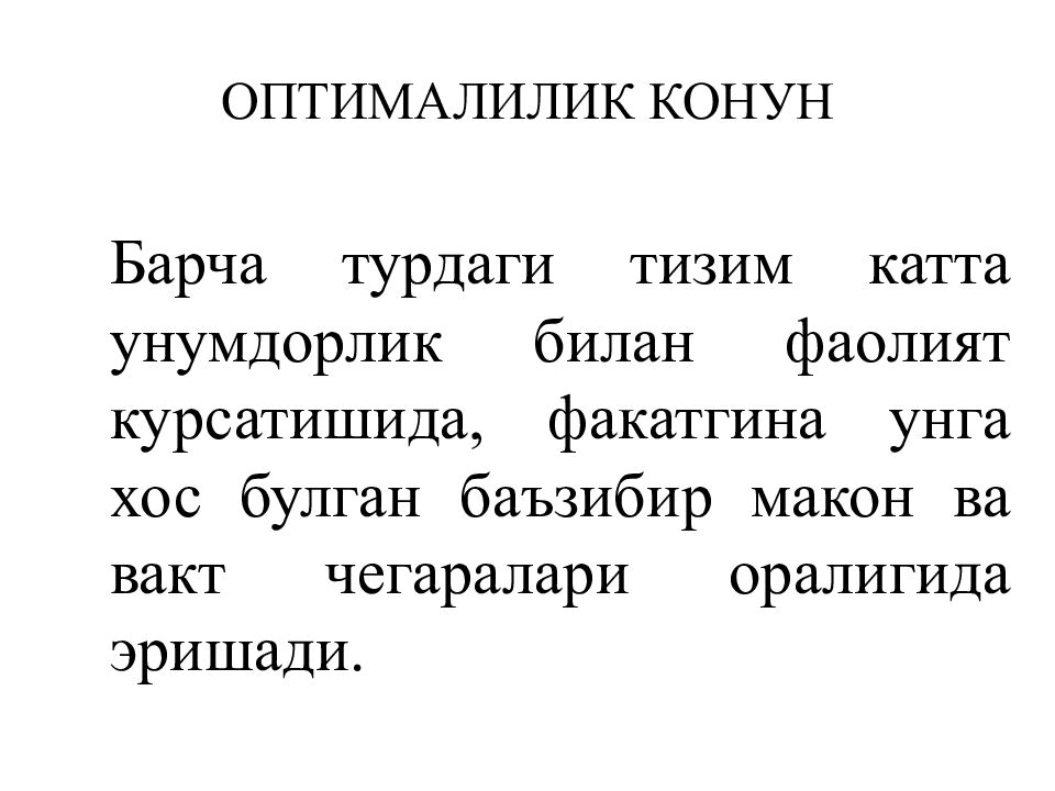 Слайд 30: ОПТИМАЛИЛИК КОНУН