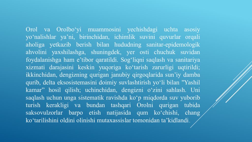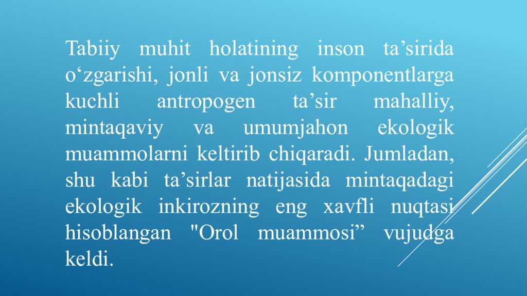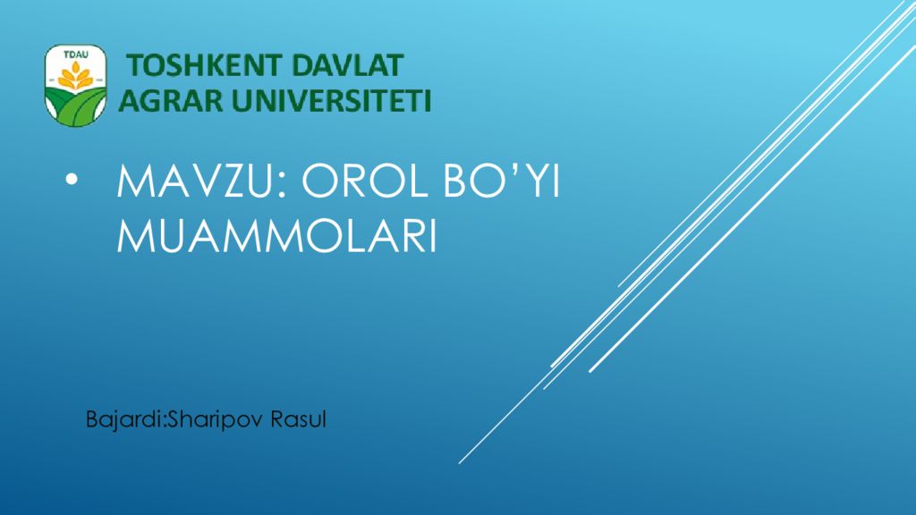 Слайд 2: Mavzu: orol bo’yi muammolari