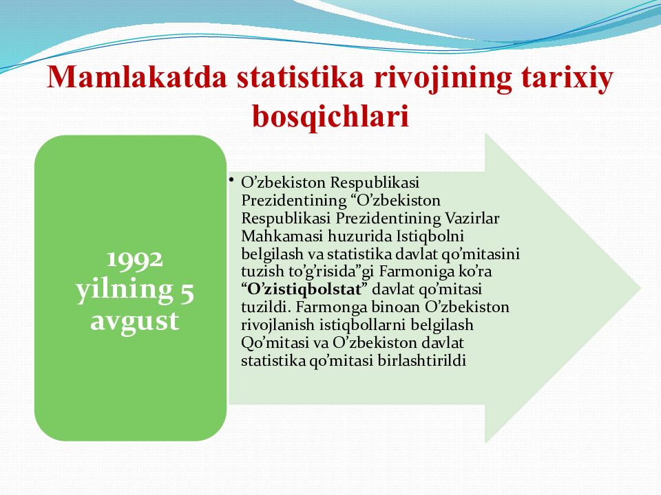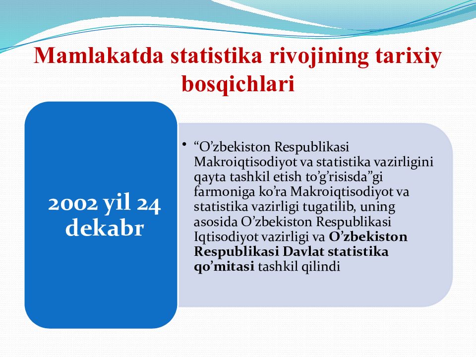 Слайд 9: Statistik ma’lumotlar mavbai