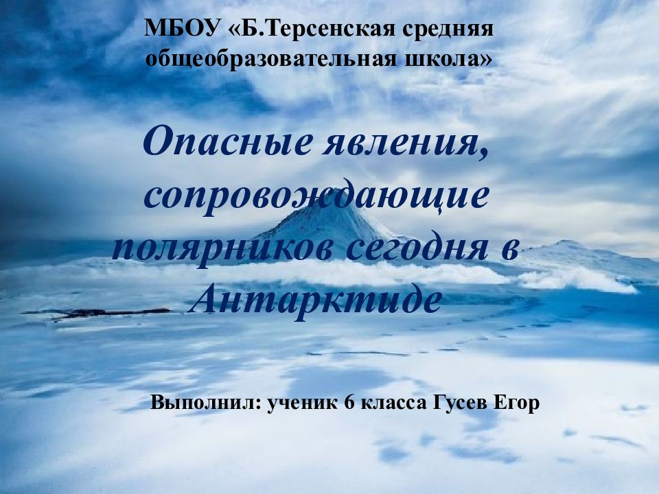 Опасные явления, сопровождающие полярников сегодня в Антарктиде Выполнил: ученик 6 класса Гусев Егор