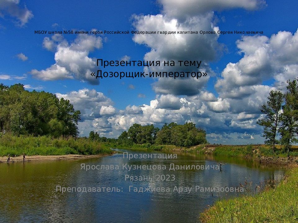 Первый слайд презентации: МБОУ школа №58 имени героя Российской Федерации гвардии капитана Орлова Сергея Николаевича Презентация на тему «Дозорщик-император »