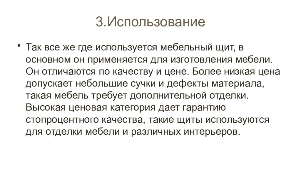 Так все же где используется мебельный щит, в основном он применяется для изготовления мебели. Он отличаются по качеству и цене. Более низкая цена допускает небольшие сучки и дефекты материала, такая мебель требует дополнительной отделки. Высокая ценовая категория дает гарантию стопроцентного качества, такие щиты используются для отделки мебели и различных интерьеров.