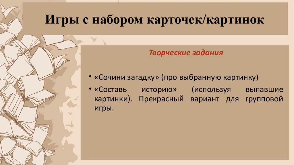 Слайд 8: Игры с набором карточек/картинок