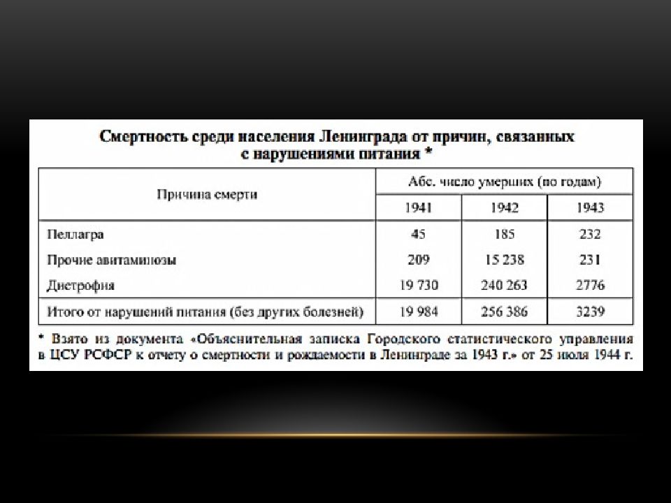 Спустя несколько недель с начала суровой осени среди населения появились массовые случаи заболевания алиментарной дистрофией, которая в первую очередь поражала детей. В ноябре 1941 года люди, страдающие этим заболеванием, составляли около 20% от общего числа больных, а в 1942 году более 80% всех ленинградцев перенесли алиментарную дистрофию.