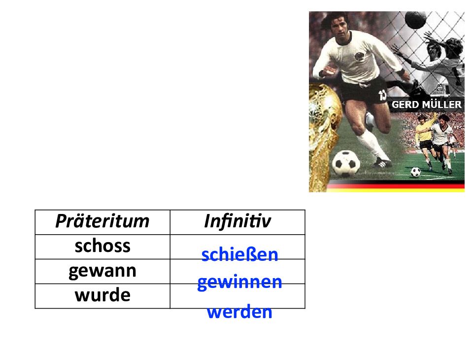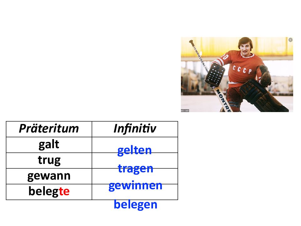 Präteritum Infinitiv galt trug gewann beleg te gelten tragen gewinnen belegen