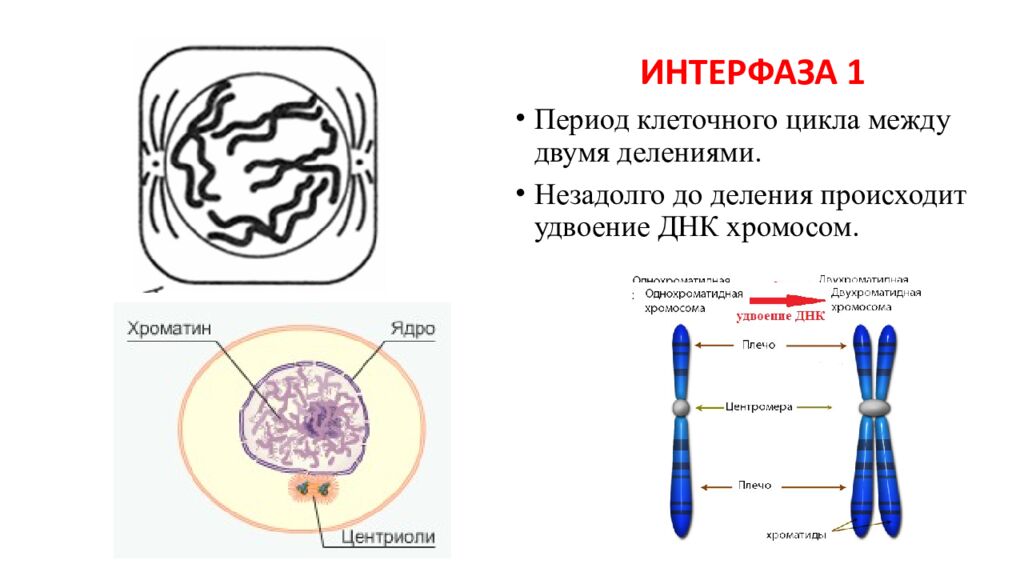 ИНТЕРФАЗА 1 Период клеточного цикла между двумя делениями. Незадолго до деления происходит удвоение ДНК хромосом.
