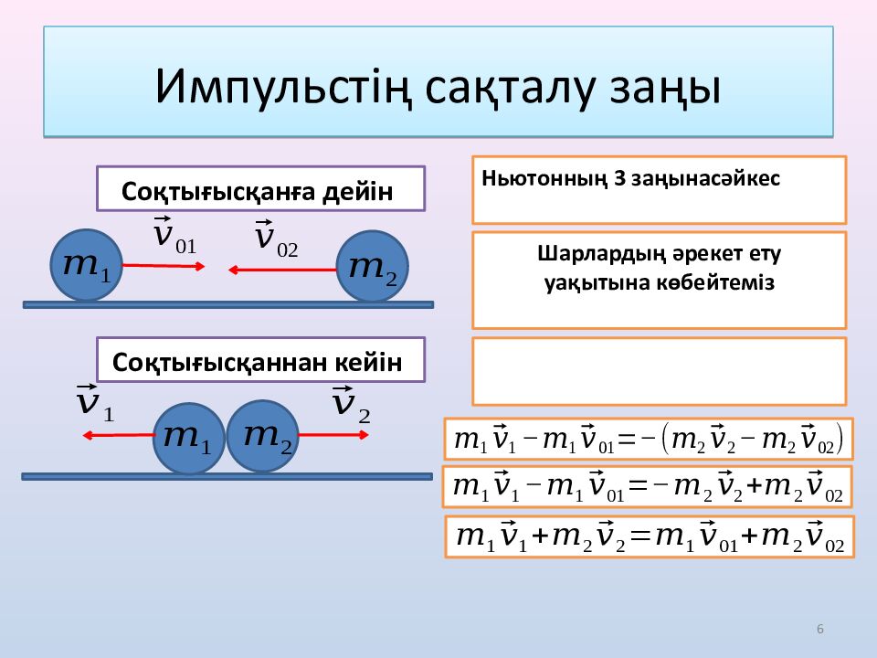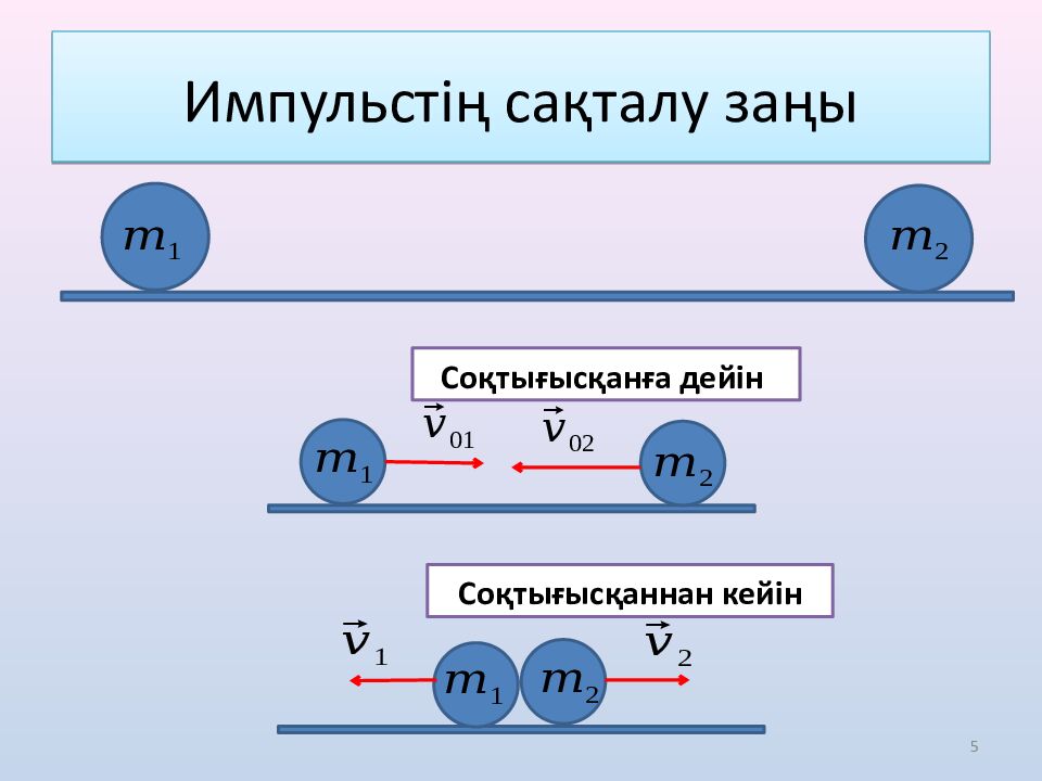 5 Импульстің сақталу заңы Соқтығысқанға дейін Соқтығысқаннан кейін