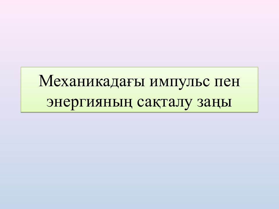 Первый слайд презентации: Механикадағы импульс пен энергияның сақталу заңы