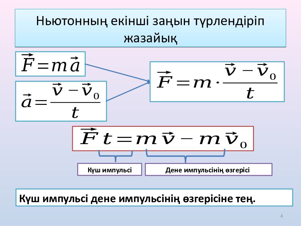 Слайд 4: Ньютонның екінші заңын түрлендіріп жазайық
