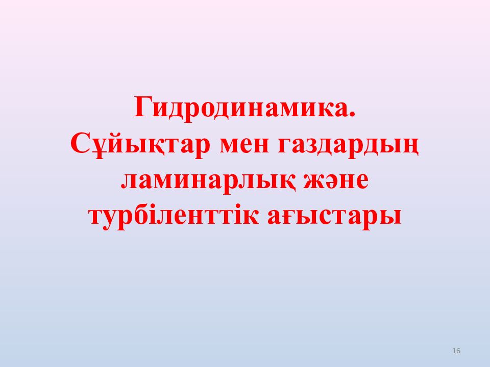 16 Гидродинамика. Сұйықтар мен газдардың ламинарлық және турбіленттік ағыстары
