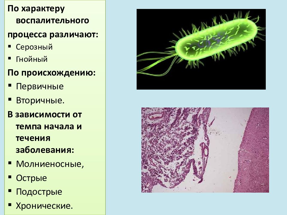 По характеру воспалительного процесса различают: Серозный Гнойный По происхождению: Первичные Вторичные. В зависимости от темпа начала и течения заболевания: Молниеносные, Острые Подострые Хронические.