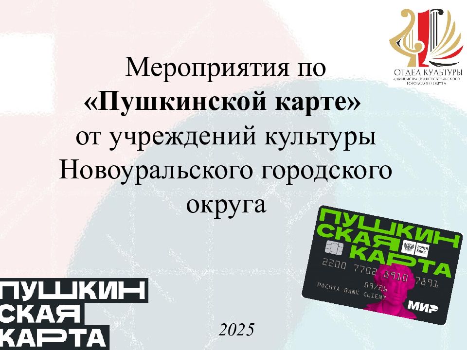 Первый слайд презентации: Мероприятия по «Пушкинской карте» от учреждений культуры Новоуральского городского округа