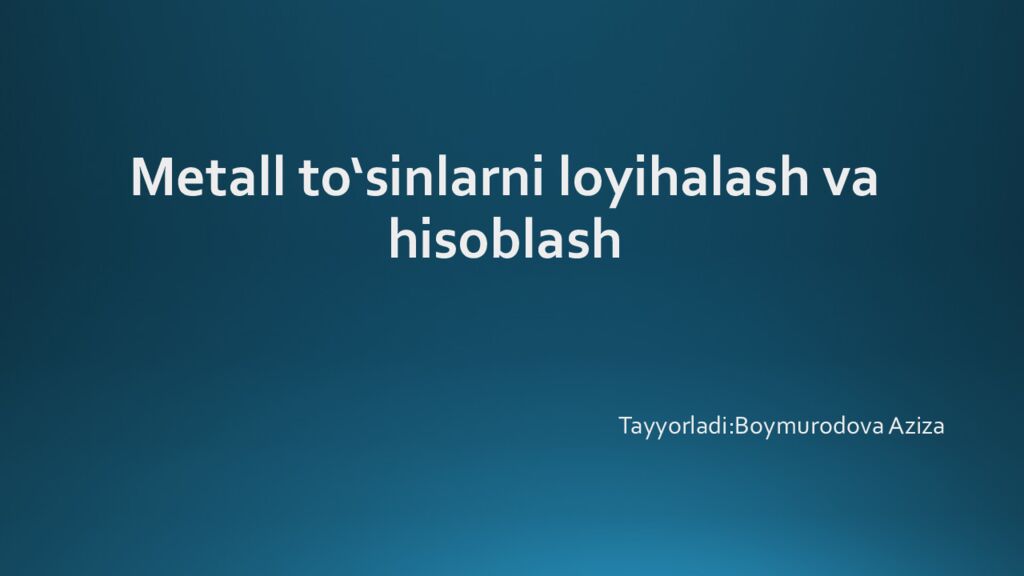 Первый слайд презентации: Metall to‘sinlarni loyihalash va hisoblash