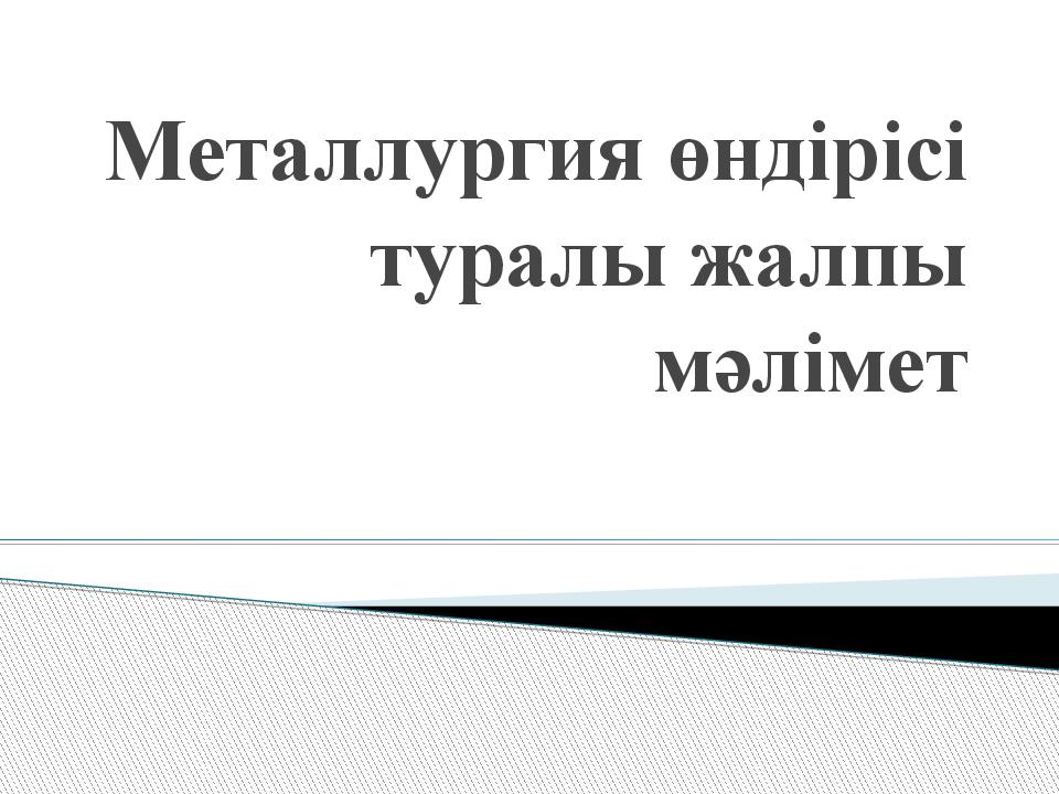Первый слайд презентации: Металлургия өндірісі туралы жалпы мәлімет