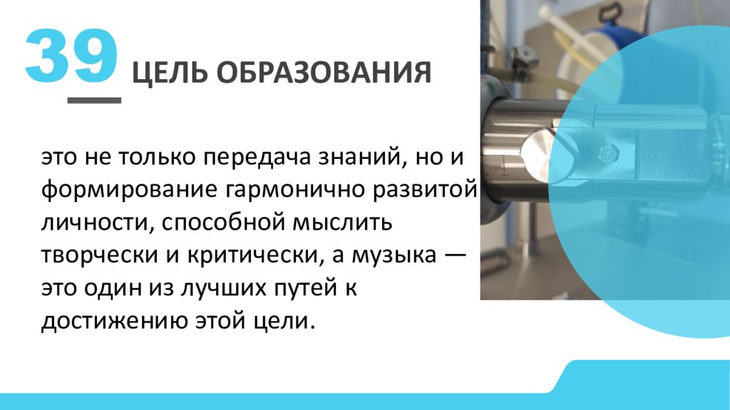 это не только передача знаний, но и формирование гармонично развитой личности, способной мыслить творчески и критически, а музыка — это один из лучших путей к достижению этой цели. 39