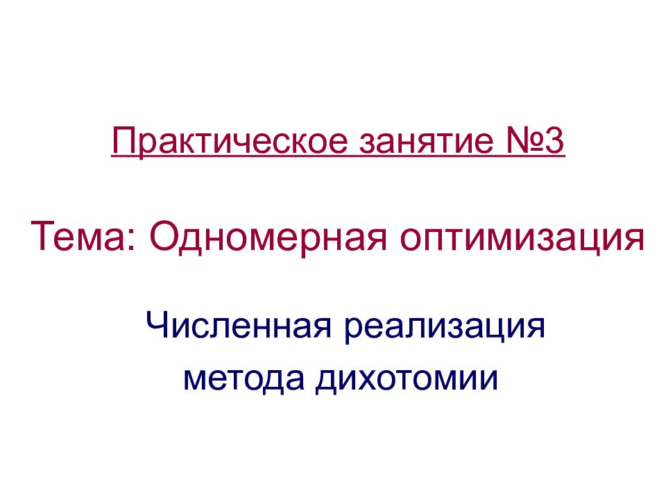 Практическое занятие №3 Тема: Одномерная оптимизация Численная реализация метода дихотомии