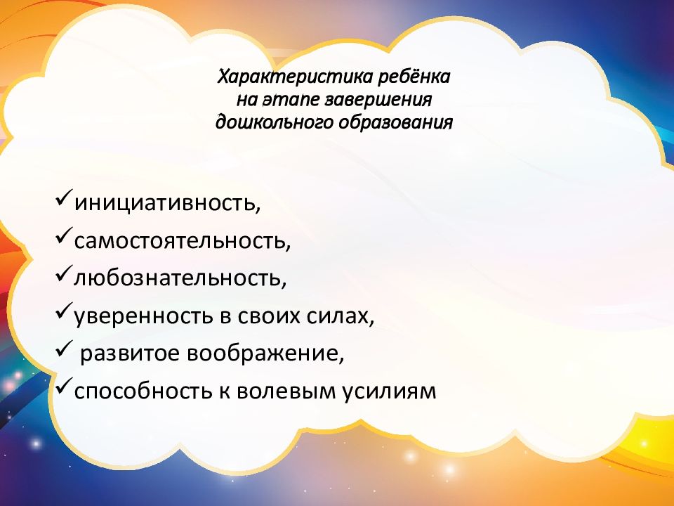 Слайд 5: Характеристика ребёнка на этапе завершения дошкольного образования