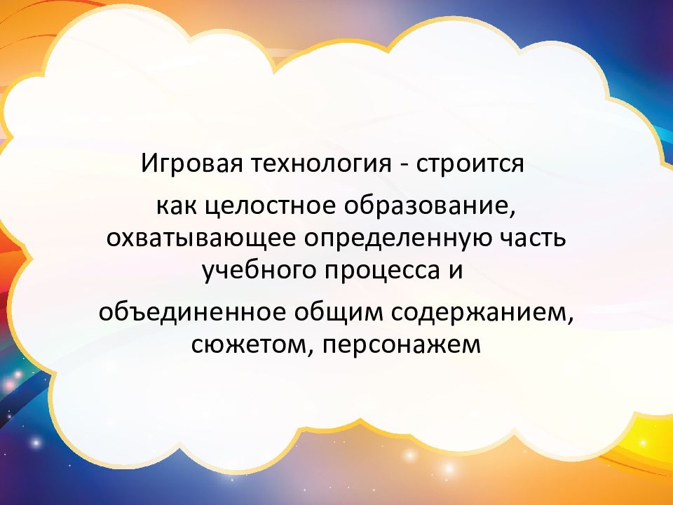 Игровая технология - строится как целостное образование, охватывающее определенную часть учебного процесса и объединенное общим содержанием, сюжетом, персонажем