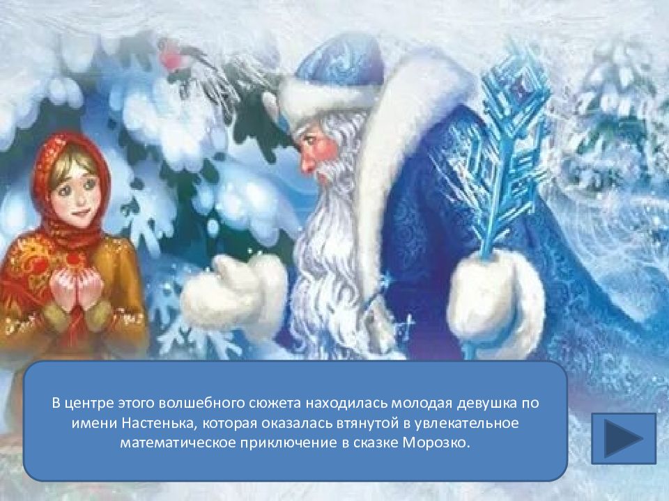 В центре этого волшебного сюжета находилась молодая девушка по имени Настенька, которая оказалась втянутой в увлекательное математическое приключение в сказке Морозко.