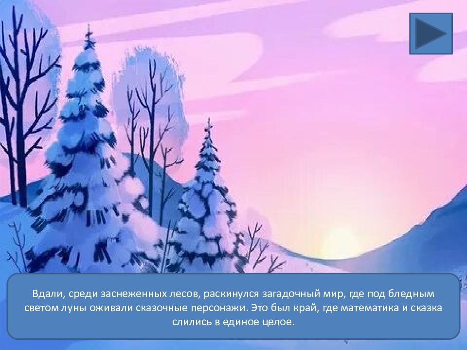 Вдали, среди заснеженных лесов, раскинулся загадочный мир, где под бледным светом луны оживали сказочные персонажи. Это был край, где математика и сказка слились в единое целое.