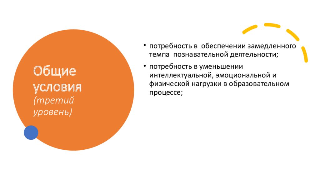потребность в обеспечении замедленного темпа познавательной деятельности; потребность в уменьшении интеллектуальной, эмоциональной и физической нагрузки в образовательном процессе;