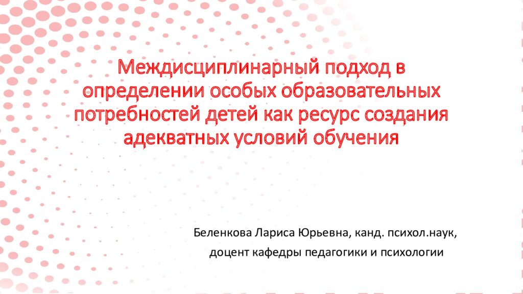 Первый слайд презентации: Междисциплинарный подход в определении особых образовательных потребностей детей как ресурс создания адекватных условий обучения