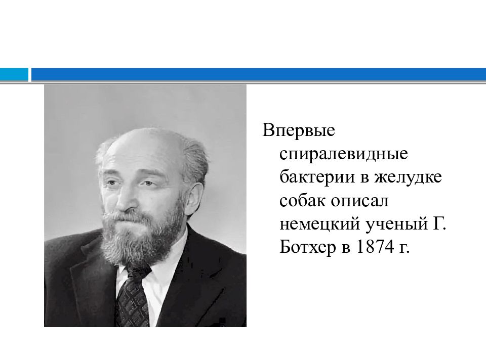 Впервые спиралевидные бактерии в желудке собак описал немецкий ученый Г. Ботхер в 1874 г.