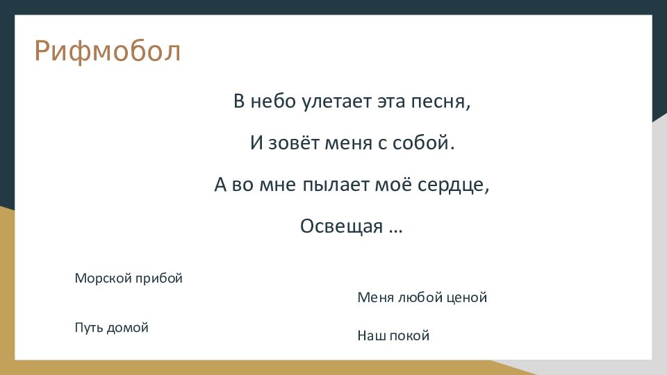 В небо улетает эта песня, И зовёт меня с собой. А во мне пылает моё сердце, Освещая … Морской прибой Меня любой ценой Путь домой Наш покой