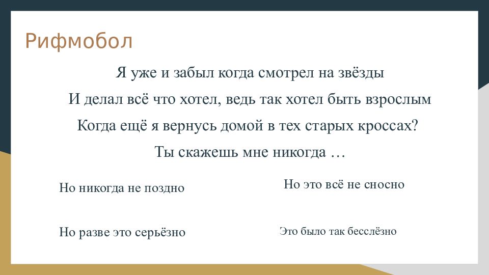 Я уже и забыл когда смотрел на звёзды И делал всё что хотел, ведь так хотел быть взрослым Когда ещё я вернусь домой в тех старых кроссах? Ты скажешь мне никогда … Но никогда не поздно Но это всё не сносно Но разве это серьёзно Это было так бесслёзно