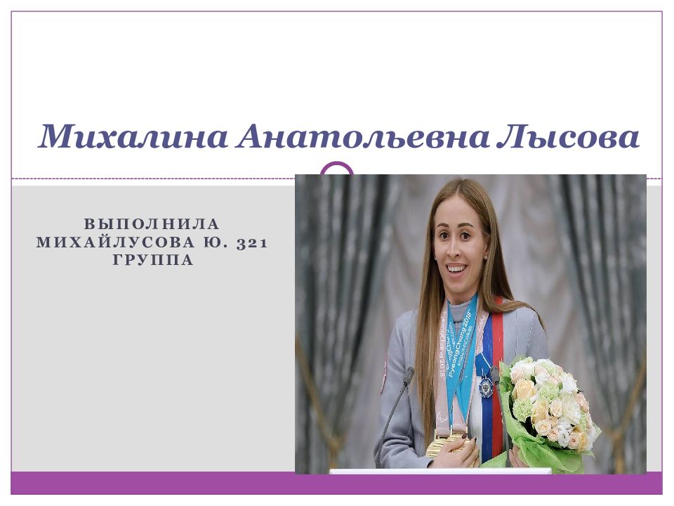 Выполнила Михайлусова ю. 321 группа Михалина Анатольевна Лысова