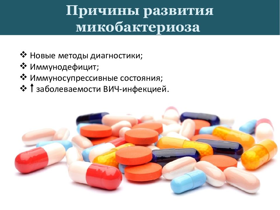Причины развития микобактериоза Н овые методы диагностики; Иммунодефицит; Иммуносупрессивные состояния; заболеваемости ВИЧ-инфекцией.