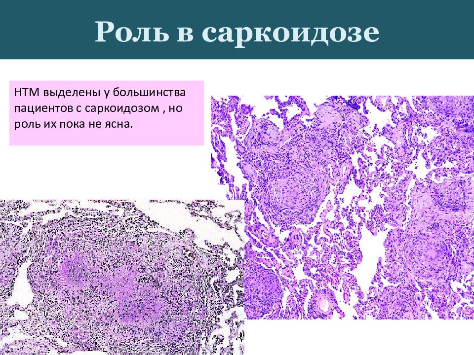 НТ М выделены у большинства пациентов с саркоидозом, но роль их пока не ясна. Роль в саркоидозе
