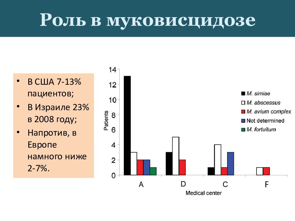 В США 7-13 % пациентов ; В Израиле 23 % в 2008 году ; Напротив, в Европе намного ниже 2-7%. Роль в муковисцидозе