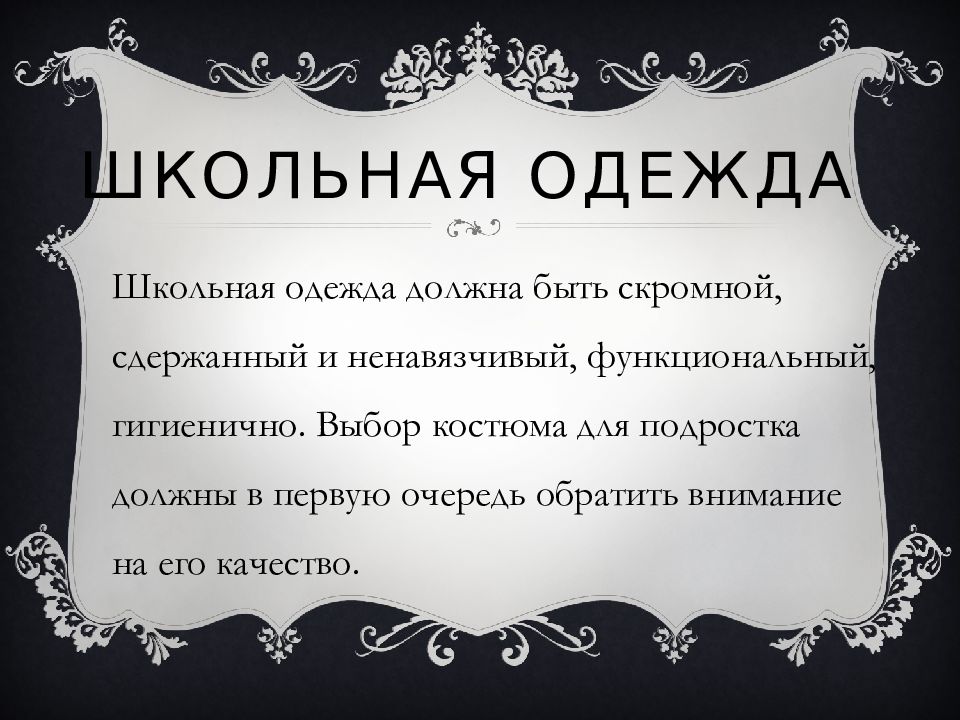 Школьная одежда должна быть скромной, сдержанный и ненавязчивый, функциональный, гигиенично. Выбор костюма для подростка должны в первую очередь обратить внимание на его качество.