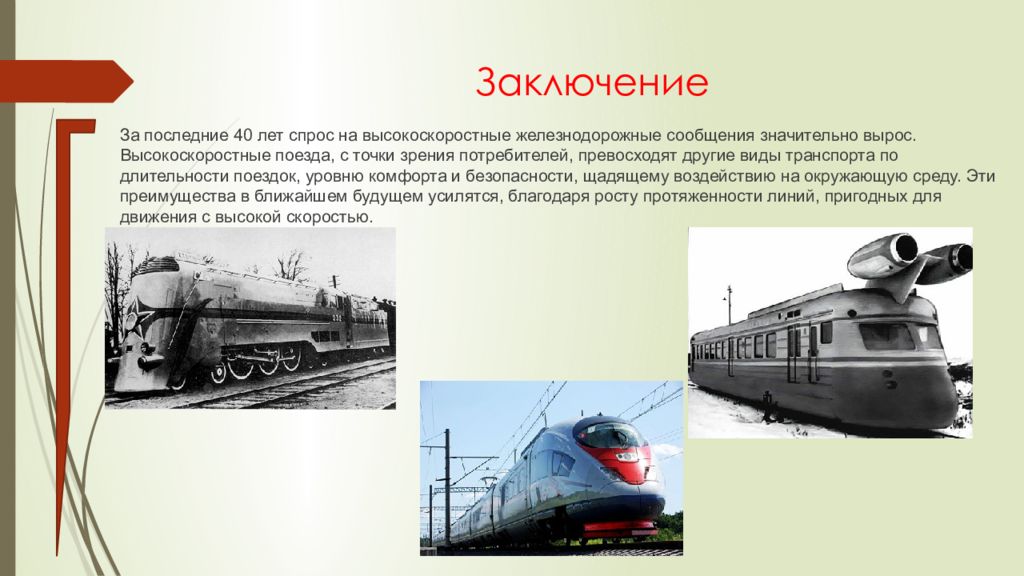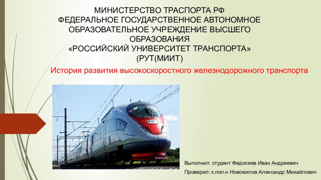 Выполнил: студент Федосеев Иван Андреевич Проверил: к.пол.н Новожилов Александр Михайлович История развития высокоскоростного железнодорожного транспорта
