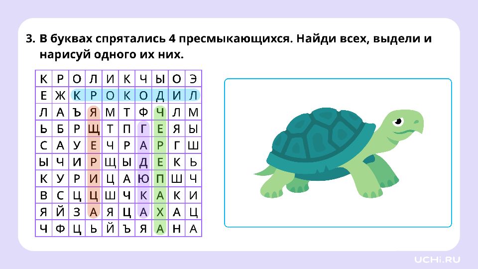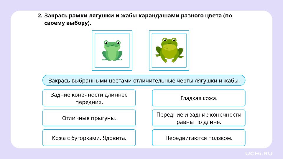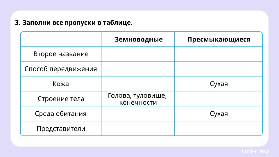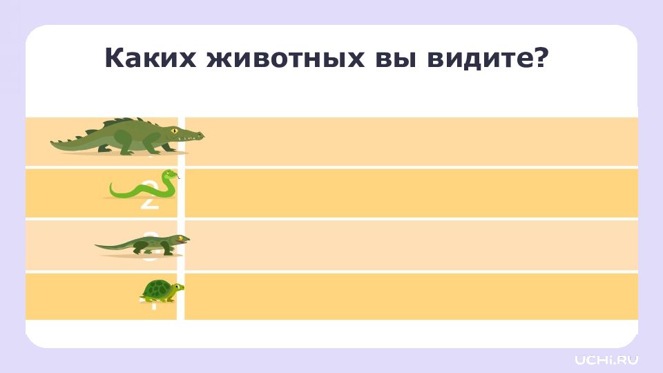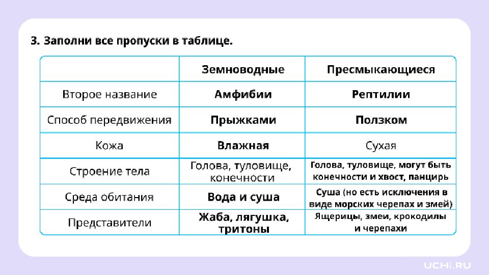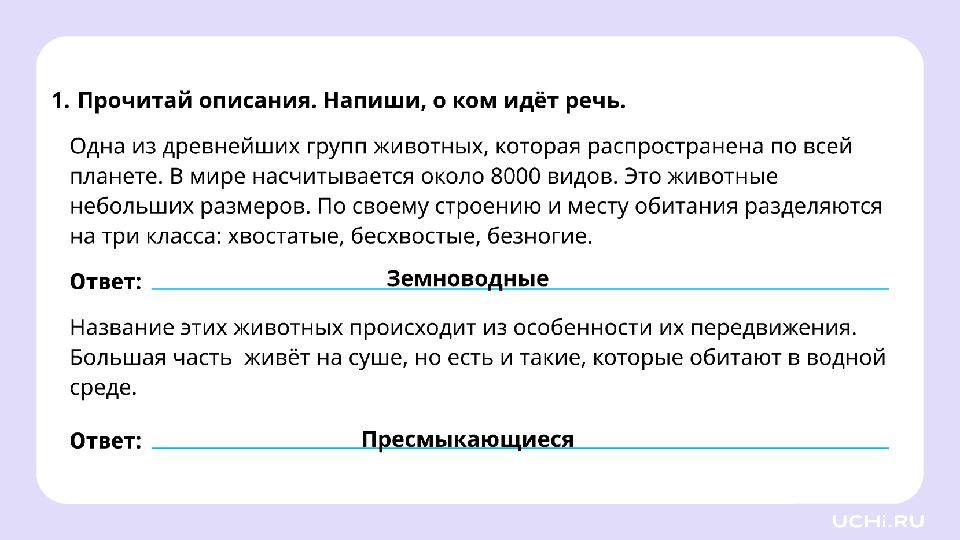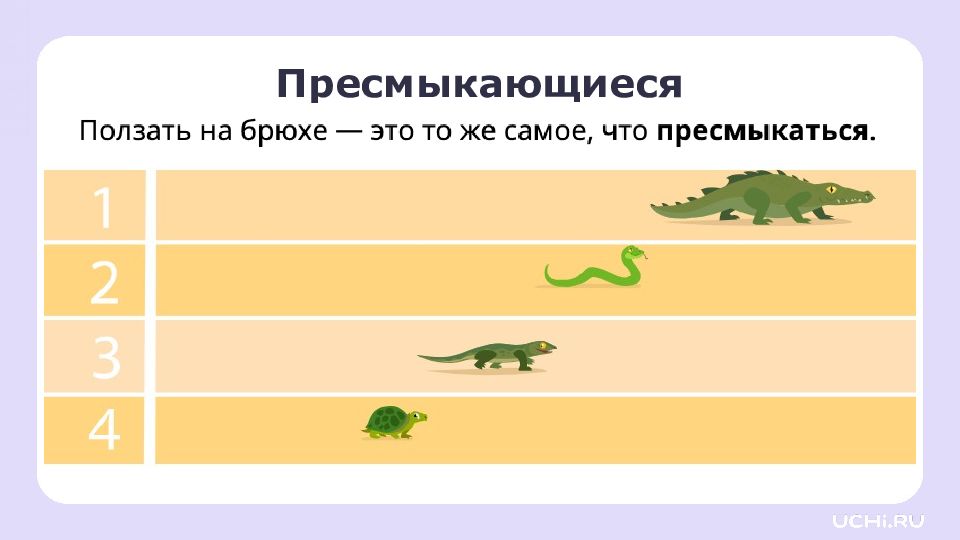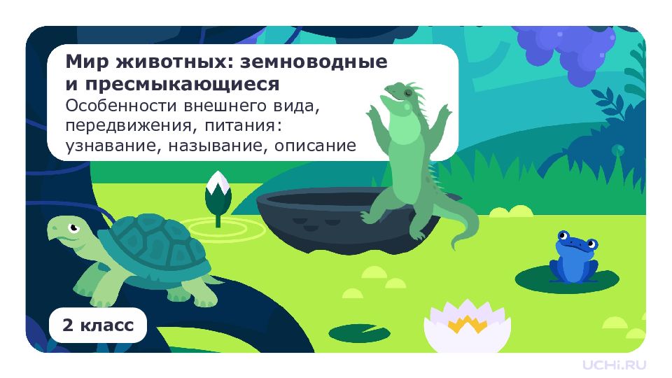 Мир животных: земноводные и пресмыкающиеся Особенности внешнего вида, передвижения, питания: узнавание, называние, описание 2 класс