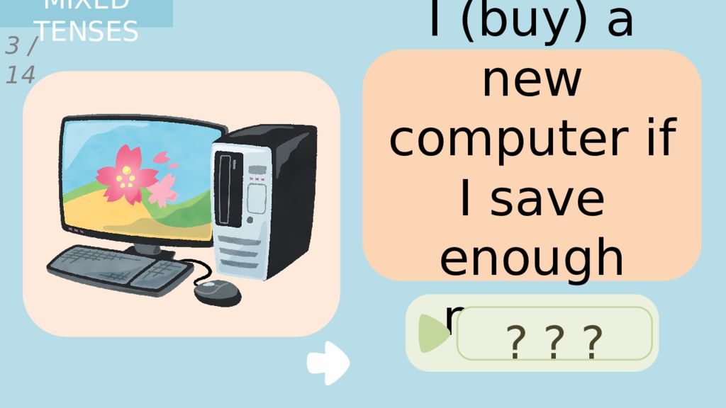 I ( buy) a new computer if I save enough money. will buy 3 / 14 MIXED TENSES ? ? ?