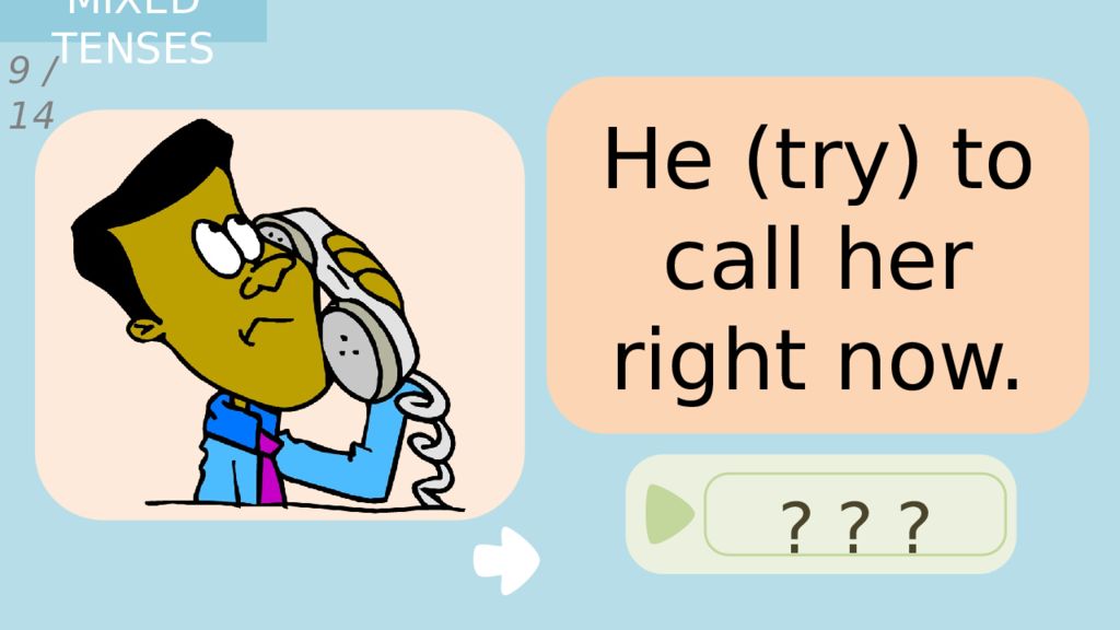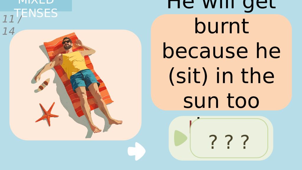 He will get burnt because he ( sit) in the sun too long. has been sitting 11 / 14 MIXED TENSES ? ? ?
