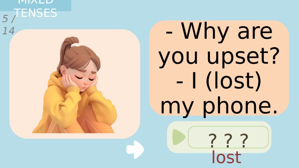- Why are you upset? - I ( lost) my phone. have lost 5 / 14 MIXED TENSES ? ? ?