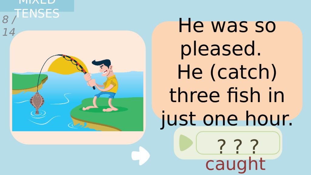 He was so pleased. He ( catch) three fish in just one hour. had caught 8 / 14 MIXED TENSES ? ? ?